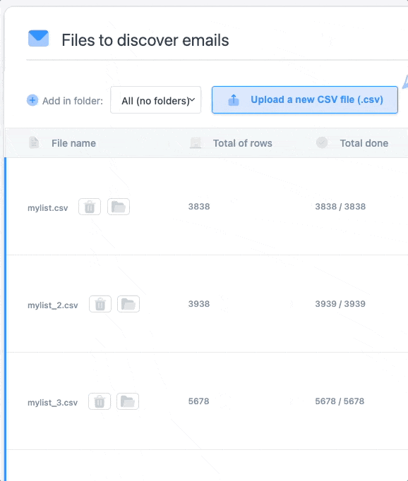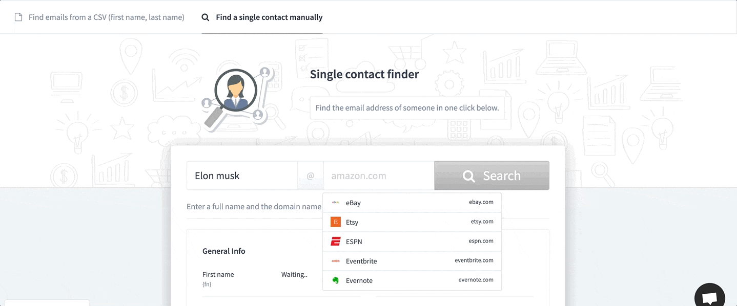 You will be able to upload a CSV with this information: first name, last name, and company name (or domain). Once you upload the data, the tool will try to find the email of each contact from the email format (for example, [email protected]). This tool is perfect for discovering emails from a list of business data.